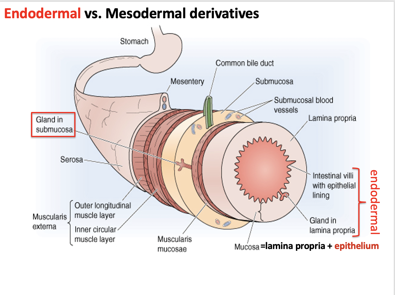 what part of the primitive gut are formed by endodermal derivatives