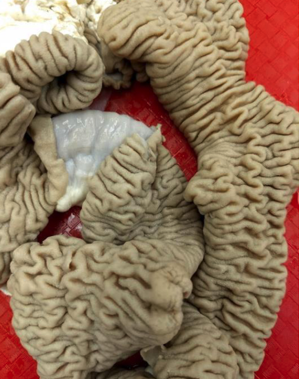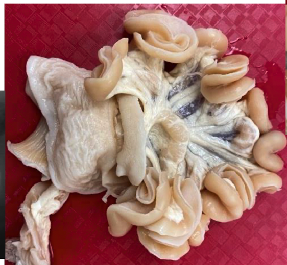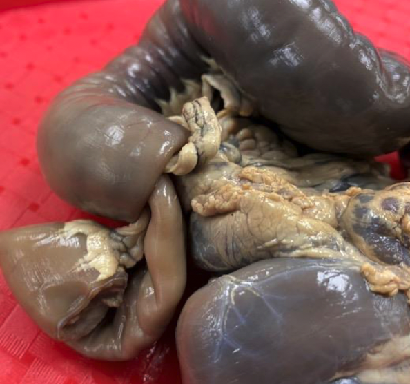 Small intestine from an emaciated adult dairy cow experiencing a recent drop in milk production with the development