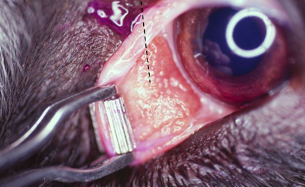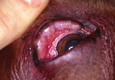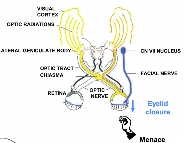 if eye normal dog will see and CN7(facial) will cause the eyelid to close