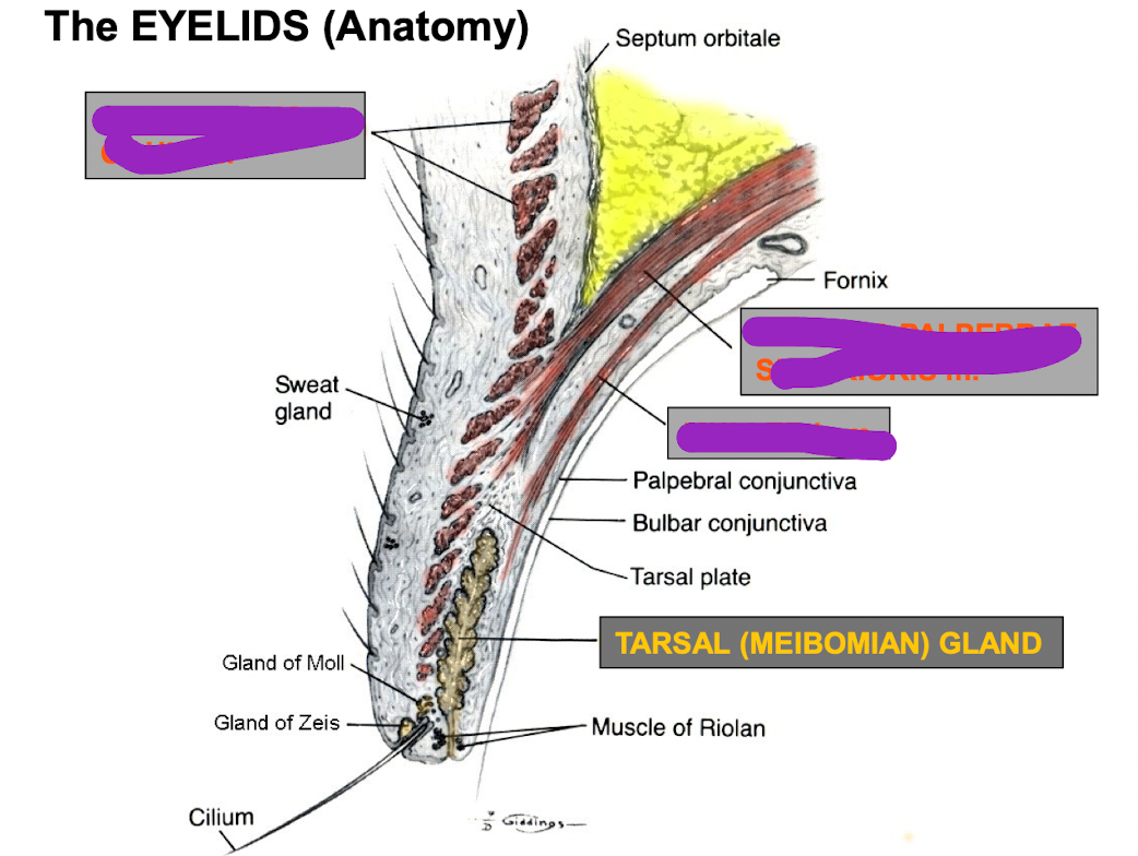 chalazion- block of meibomian gland (tarsal) that form little tumor