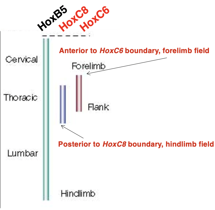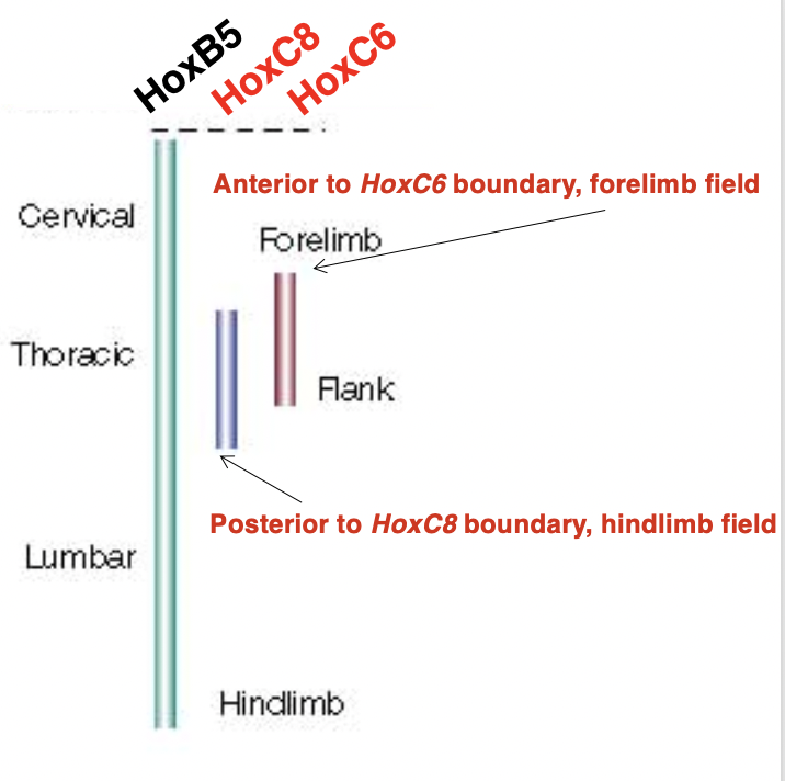 HoxC6 starts at top therefore no place where it stops= no forelimbs