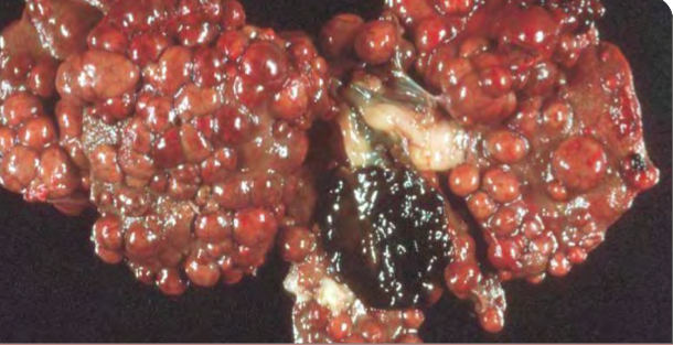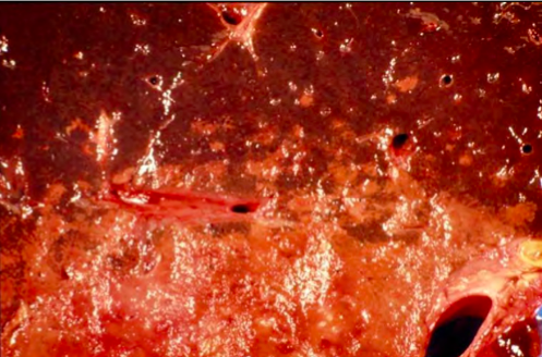 In cases of chronic injury, regeneration can result in hepatocellular nodular proliferation, fibrosis and impaired blood and bile flow. This condition is commonly known as cirrhosis.