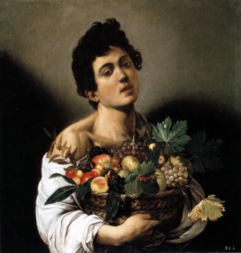 Boy with a basket full of fruit