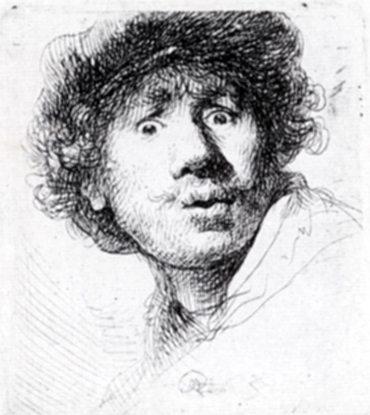 Self-portrait in a cap Open-mouthed and Staring