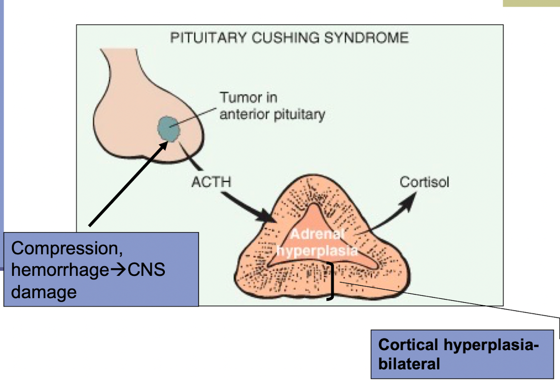 pituitary will secrete ACTH which will cause the release of — from the adrenal glands which causes