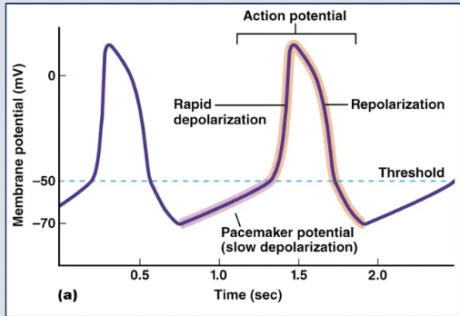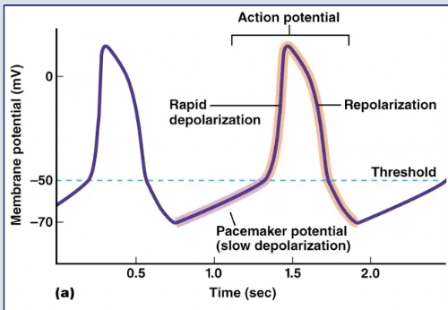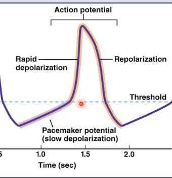 about half way, Ttype Ca channels will open and get “pacemaker” cell to threshold