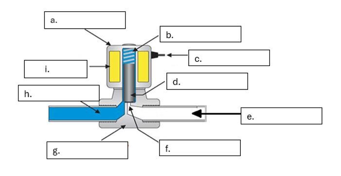 Label the parts of the solenoid valve shown below. A