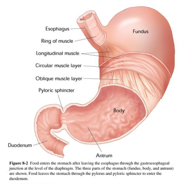what are the three parts of the stomach