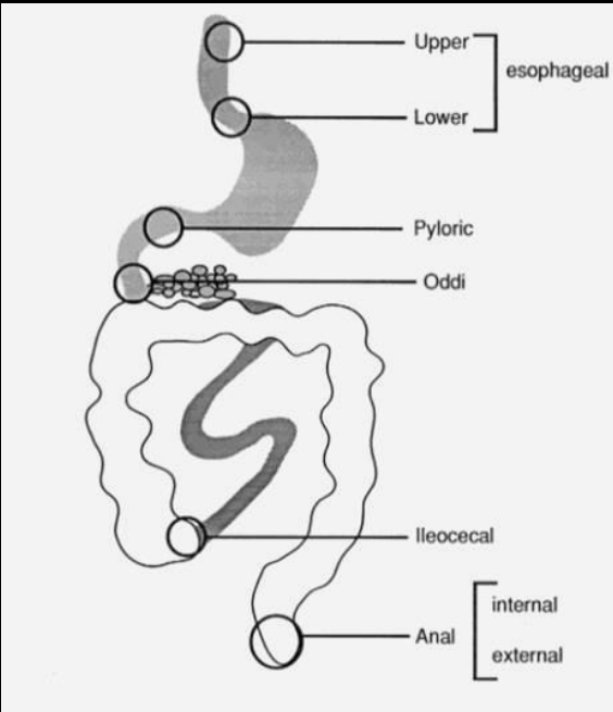 different sphincters from top to bottom