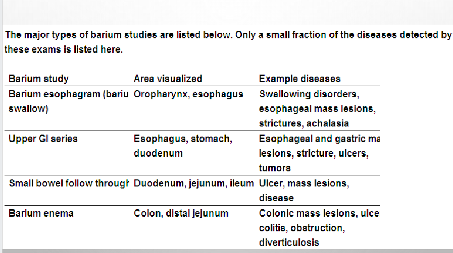 Barium exams may be either single (barium alone) or