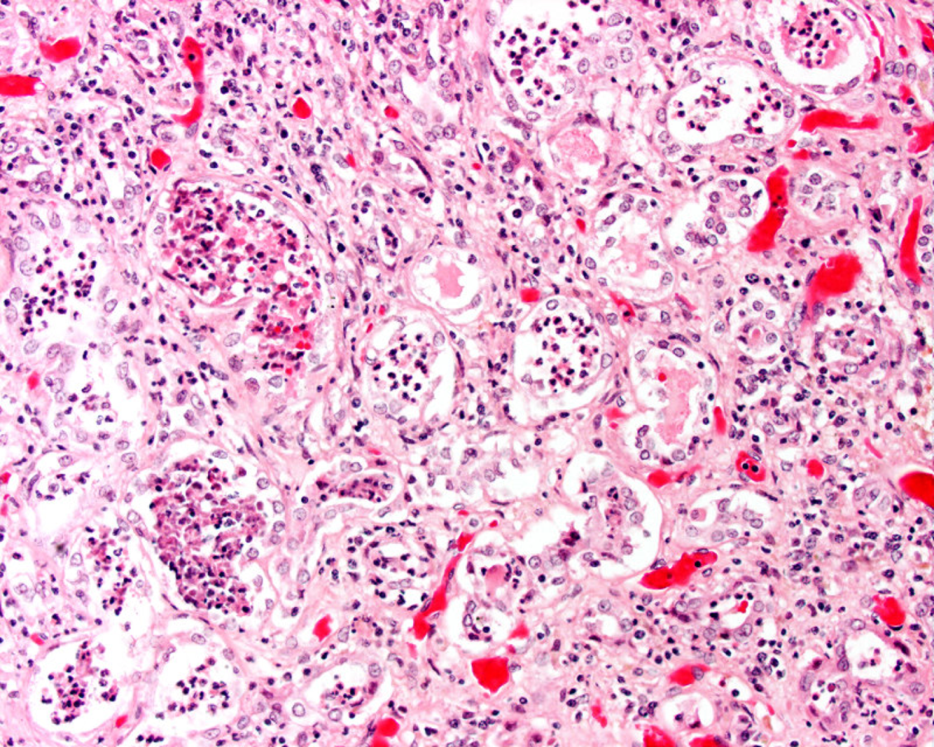 This is a fixed kidney demonstrating acute pyelonephritis