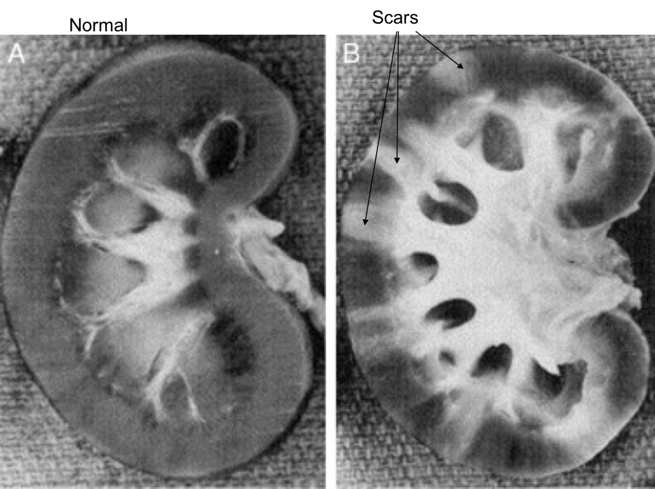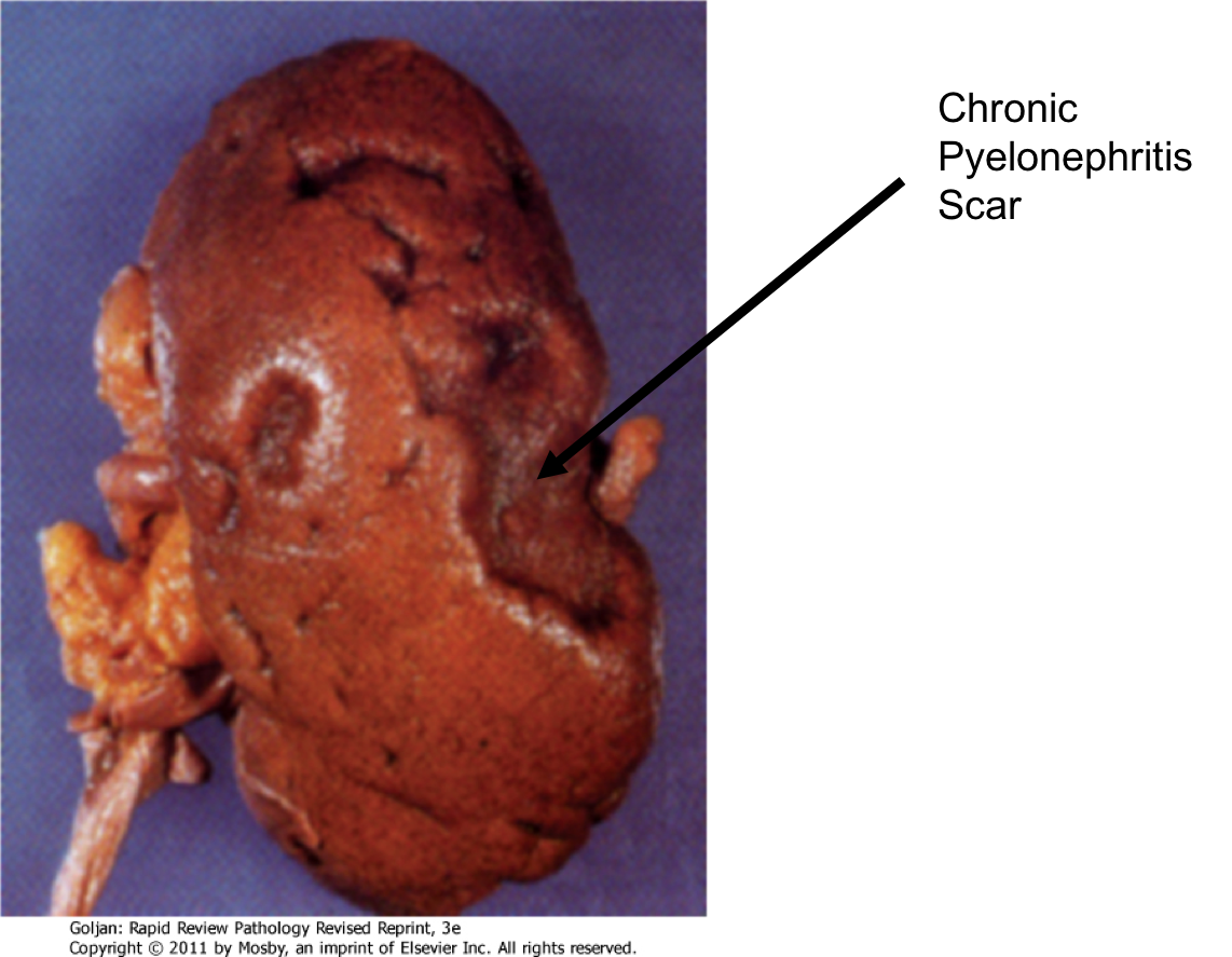 Scars. Could be from pyelonephritis, infarct, etc. Need biopsy