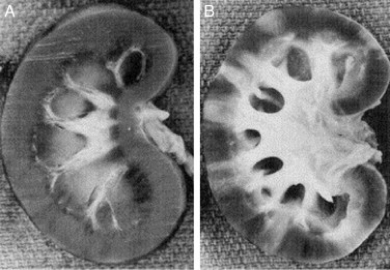 Normal kidney on the left. What is wrong with the left?