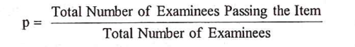 p value ranges from 0 (nobody answered item correctly; very difficult) to 1.0 (Item answered correctly by all; very easy).