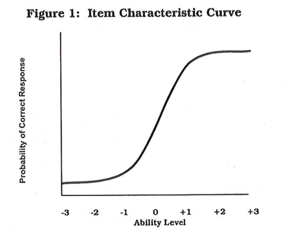 The curve provides info. on the relationship btwn an examinees level on the ability or trait measured by the test & the probability that he/she will respond to the item correctly.