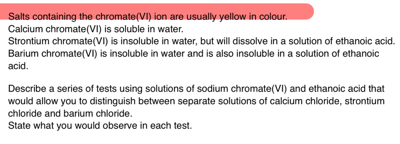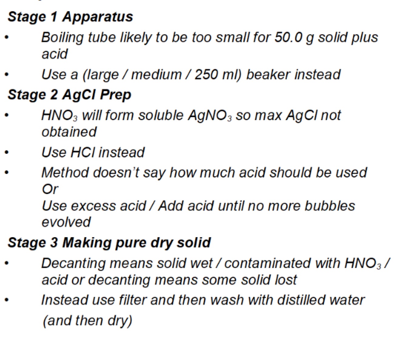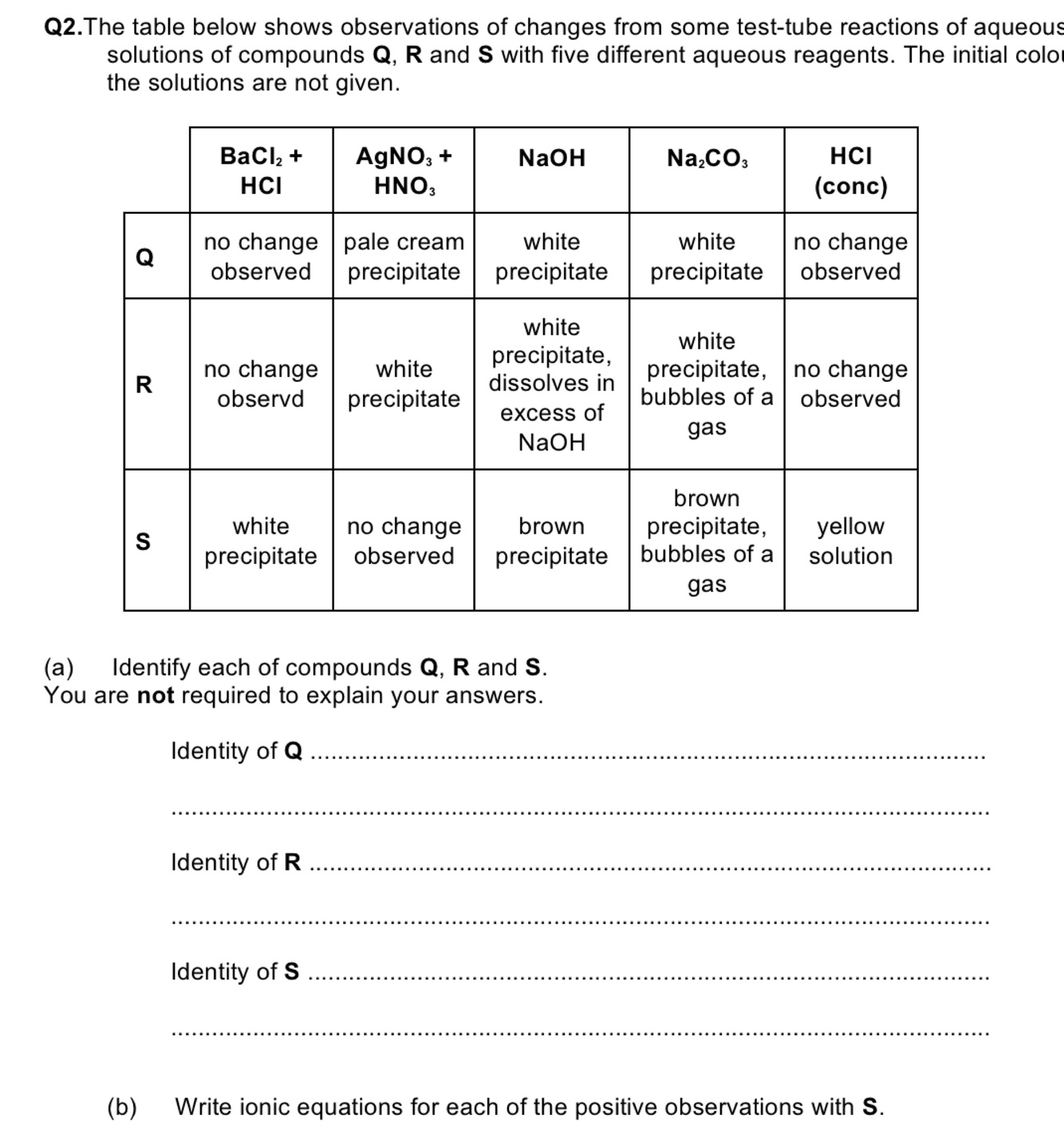 Q5.In an experiment to determine its solubility in water, solid barium hydroxide was added to 100cm of water until there was an excess of the solid. The mixture was filtered and an excess of sulfuric acid was added to the filtrate. The barium sulfate produced was obtained from the reaction mixture, washed with cold water and dried. The mass of barium sulfate was then recorded.