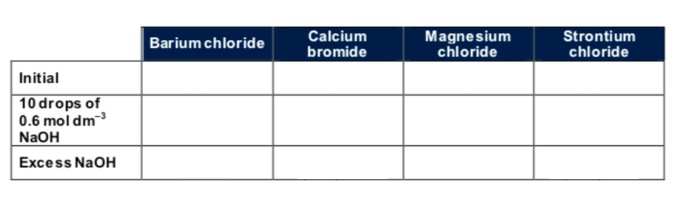 Results when using dilute sodium hydroxide: fill in the blanks