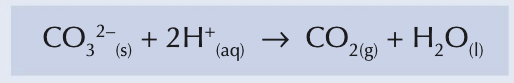 Write the equation of carbonate ions reacting with hydrogen ions