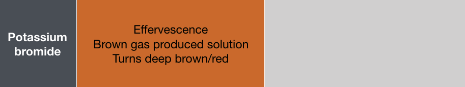 State the results of when potassium bromide reacts with concentrated sulfuric acid. Include the paper result.