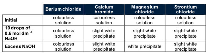 Results when using dilute sodium hydroxide: fill in the blanks