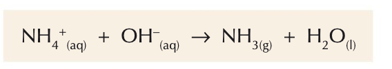 Write an equation to show the reaction between hydroxide ions and ammonium ions