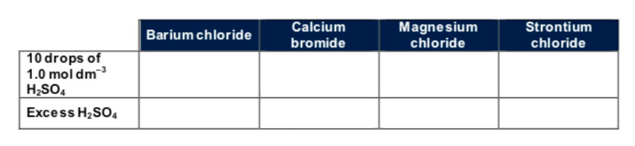 Results when using dilute sulfuric acid: fill in the blanks