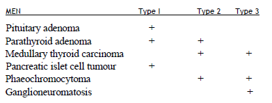 Multiple endocrine neoplasia Type 1 is also known as Wermer syndrome. Inheritance isautosomal dominant with high penetrance. The male to-female ratio is 1:1. Organ involvement includes parathyroid hyperplasia (97%), pancreatic islet cell tumour (30% 80%), anterior pituitary gland tumour (15%—50%) and adrenocortical hyperplasia (33%-40%).