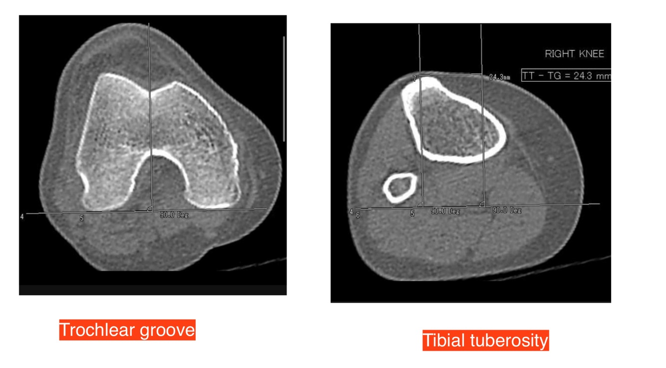 Trochlear dysplasia, patella alta (increase in the ratio of the patella tendon to the patella length) and an increase in the tibial tuberosity trochlear groove (TT-TG) distance are associated factors.