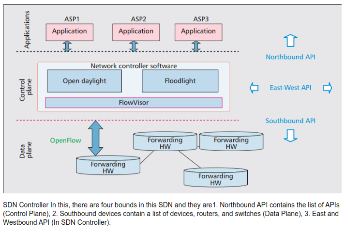 SDN separates the network control plane from the data forwarding plane. This allows the control plane to control multiple devices. SDN applications use the SDN northbound interface (NBI) to communicate the network requirements of SDN applications to the SDN controller. The control plane can then configure the various network devices as required.