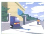 El vehículo azul sale marcha atrás de un garaje. ¿Quién tiene preferencia?