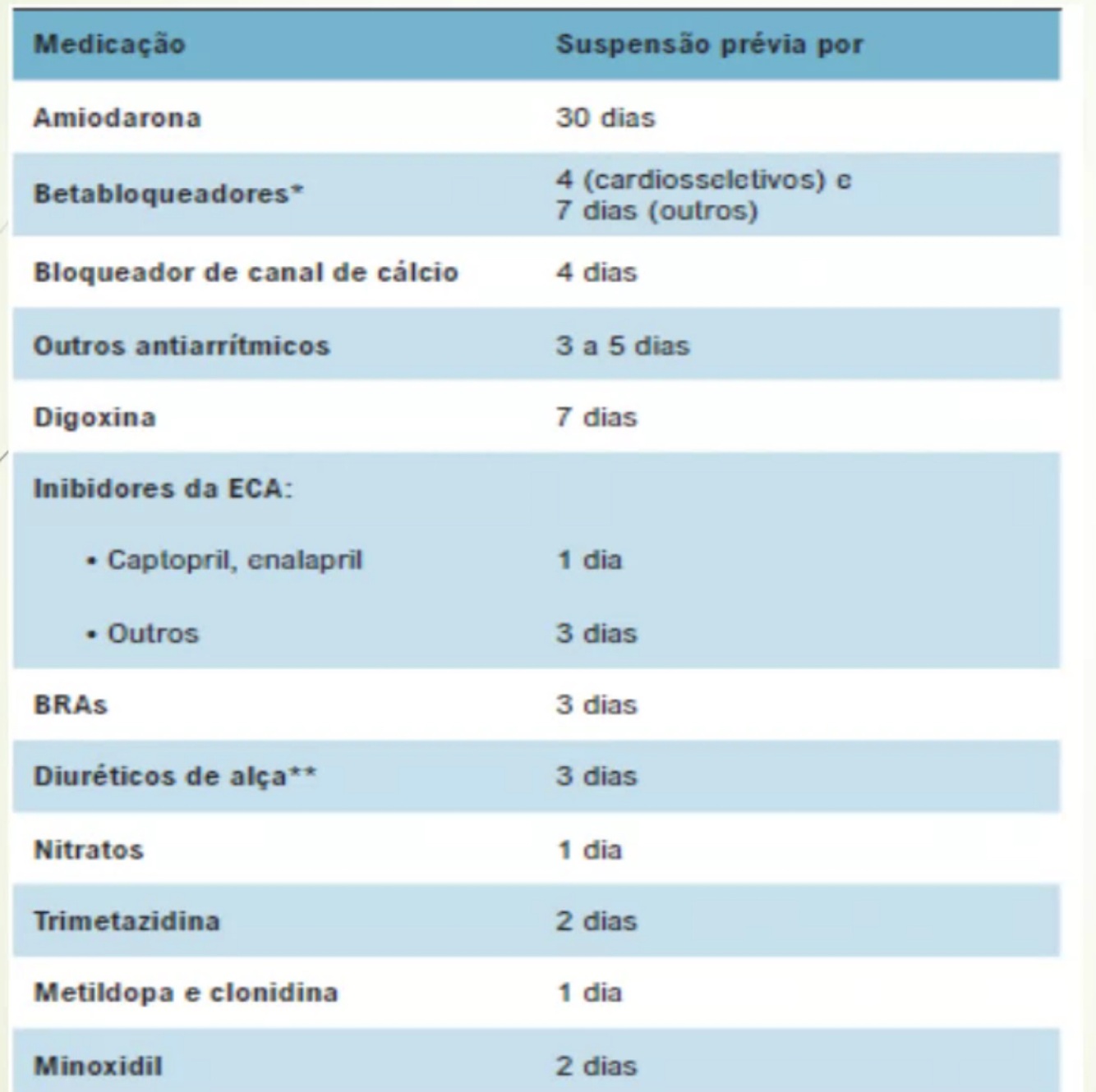 Suspensão de medicações antes do TE para diagnóstico de isquemia
