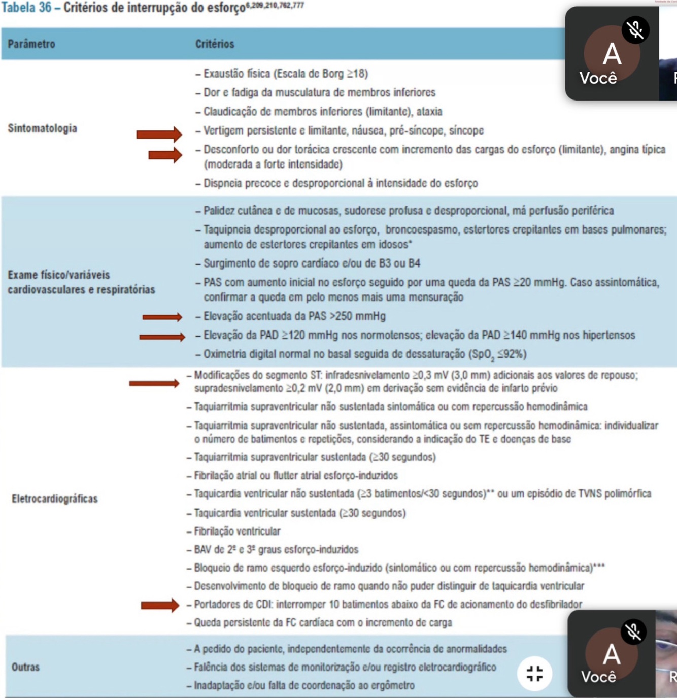 Obs; apenas an angina limitante - aquela que o paciente não aguenta fazer mais - é critério de interrupção do exame.