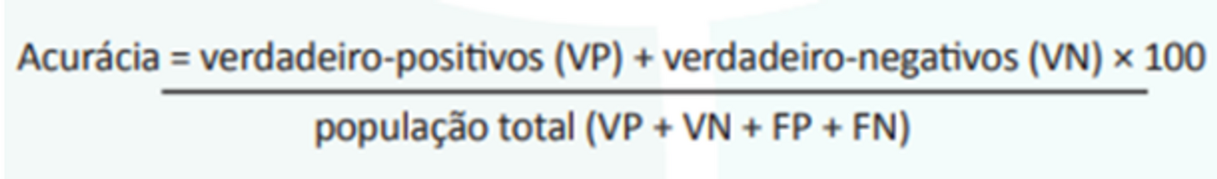 Acurácia é a capacidade do teste de mensurar corretamento o estado de saúde do indivíduo.