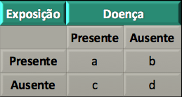 (SES-PE 2019 ACESSO DIRETO) - Considerar uma tabela a seguir, em cada caso (a, b, c, d) significa a quantidade de pessoas que foi exposta / não exposta a um fator determinado e cuja doença está presente / ausente: Pergunta: Se você pode calcular ou calcular a prevalência de doenças entre os que estão em exposição está ausente, qual fórmula deve ser aplicada?