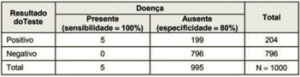 (SUS-SP 2019 ACESSO DIRETO) - Para cada doente, o número aproximado de “alarmes falsos” é de