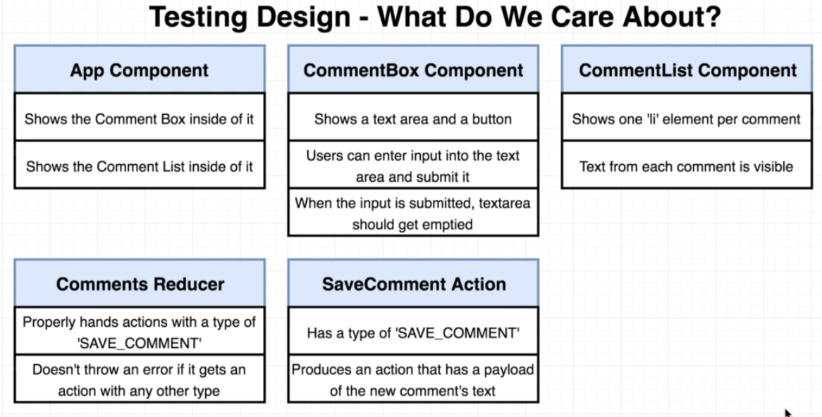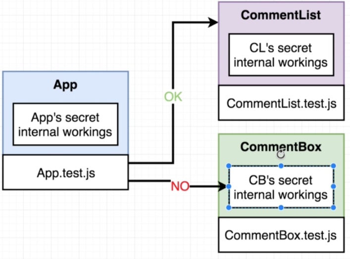 If we write a test for a component, then that test shouldn’t mess with the inner workings or the actual implementation details of any other component if possible