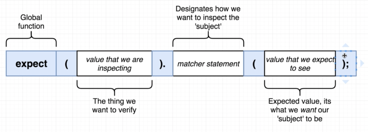 expect(value that we are inspecting).matcher statement(value that we expect to see);