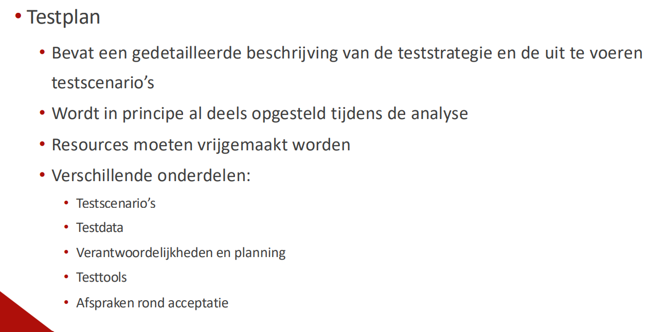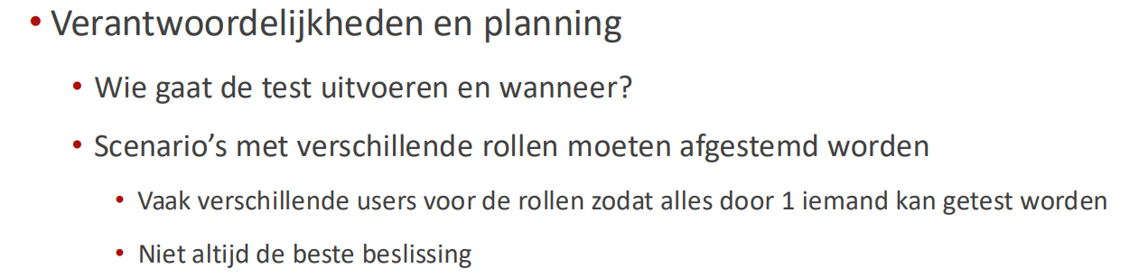 leg het verantwoordelijkheden en planning deel uit van het testplan