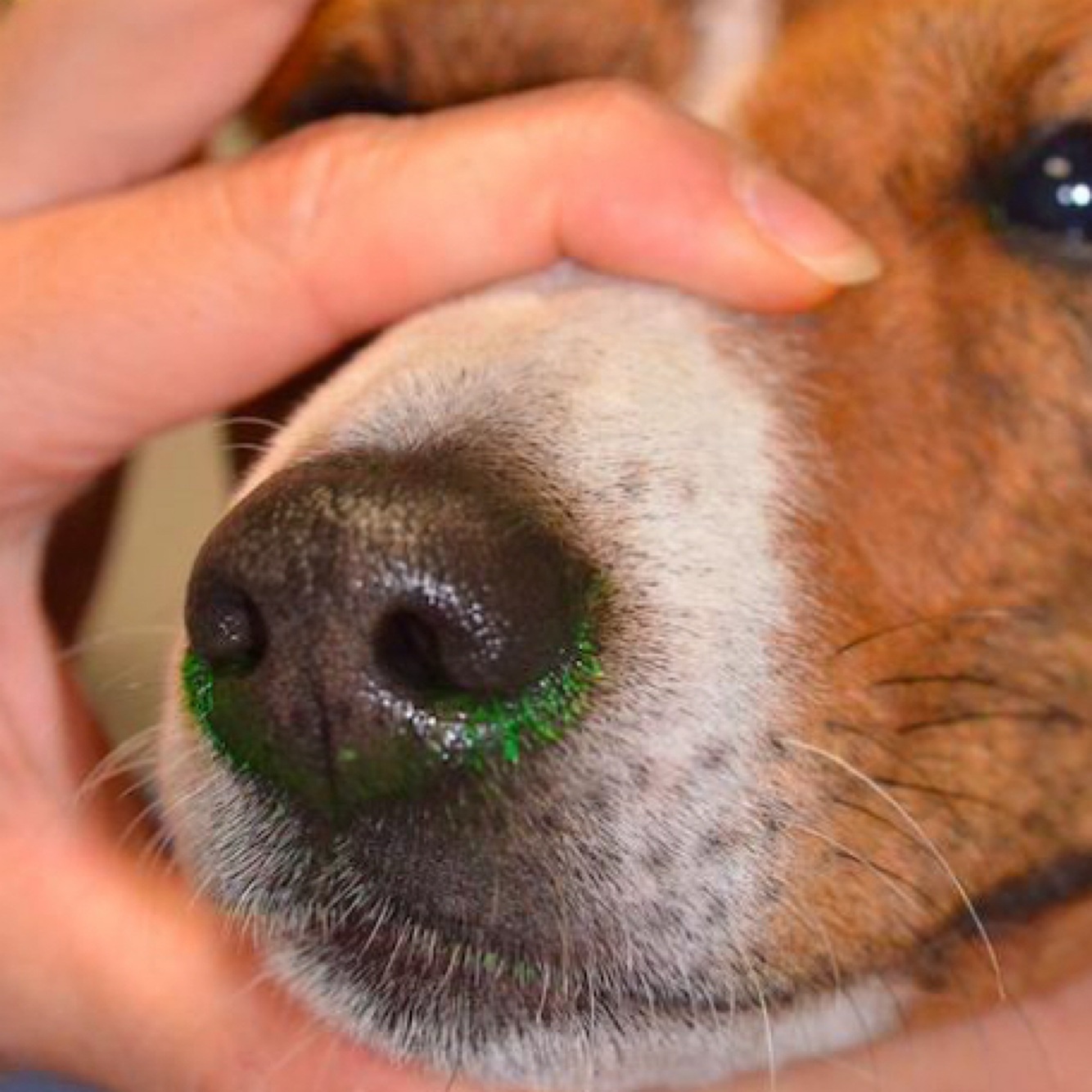 * pas concluant, regarder cavité buccale, de,ai d’attente insuffisant, léchage/deglutition par le chien