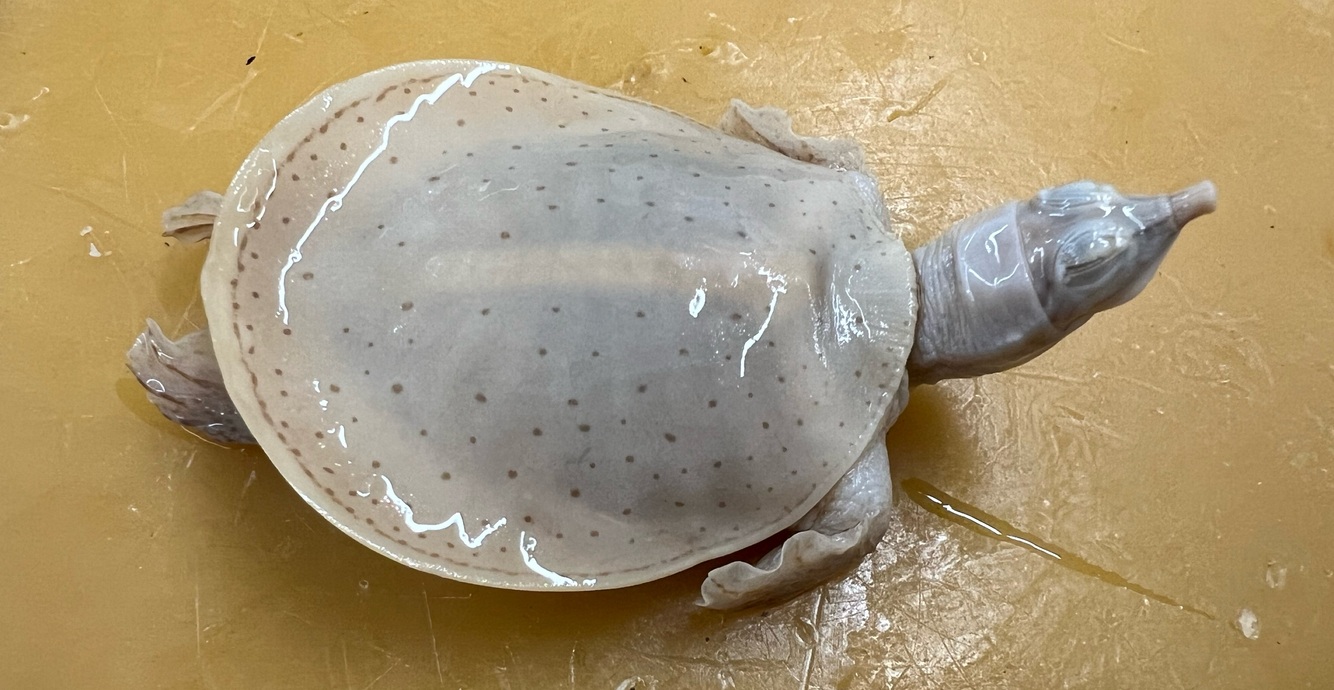 Characteristics: Carapace without tubercles on anterior margin or dark circles, webbing between toes without dark mottling