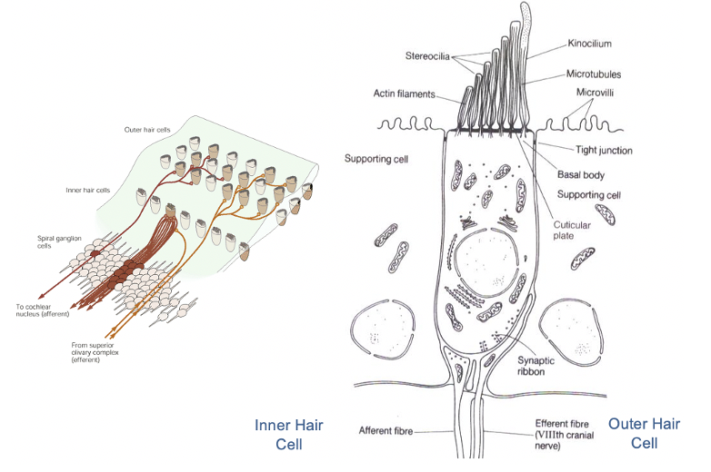 Tell me about the inner and outer hair cells