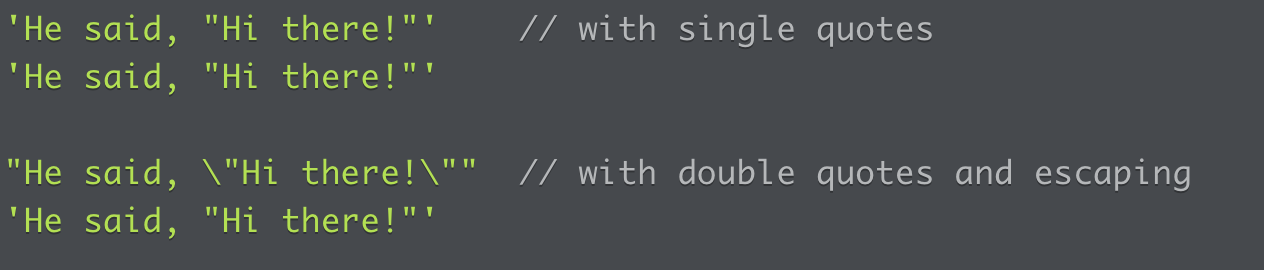The backslash, or escape character (), tells the computer that the next character isn’t syntactic, but is part of the string