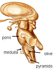 Connects pons and medulla to diencephalon