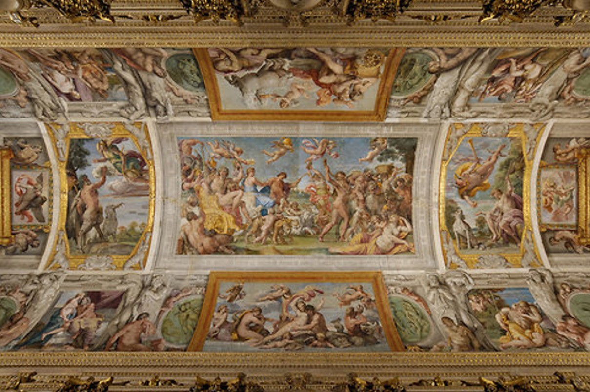 Caracci used the technique, quadroriportato, by painting realistic frames around each scene on the ceiling