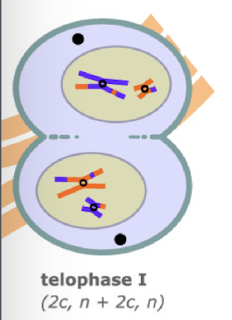reductional division: homologous chromosomes are separated creating 2 haploid daughter cells