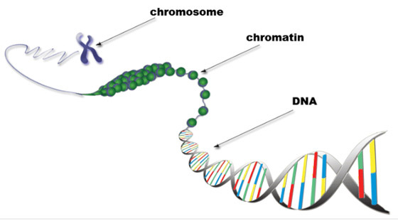 Chromatin is DNA and proteins but is spread out/not as tightly packed as a chromosome.