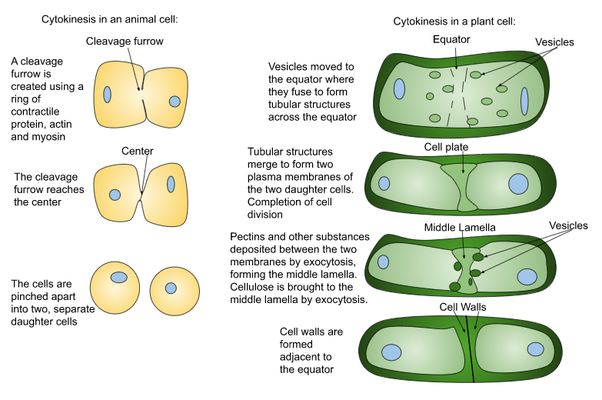 It is different in plant and animal cells, due to a plant having a cell wall.