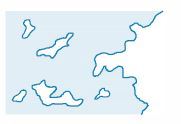 Lighter blue tone that shows the shoreline limitations of all coastal water features at mean high water levels for oceans and seas