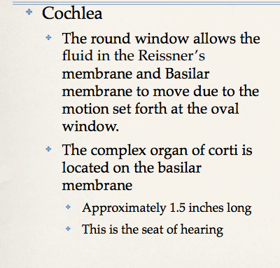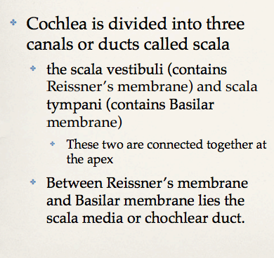 It changes hydraulic pressure into coded neural impulses *This part looks like a snail