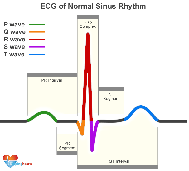 Atrial depolarisation = upwards as towards +ve electrode = SAN must be setting HR, can be absent in which case AV will be setting pace